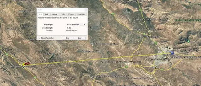 خبرنگار از پایگاه هوانیروز کرمانشاه تا مقصد از پرواز ۴۰دقیقهای نام میبرد که با توجه به این زمان میشود مختصات نسبی پایگاه را پیدا کرد.